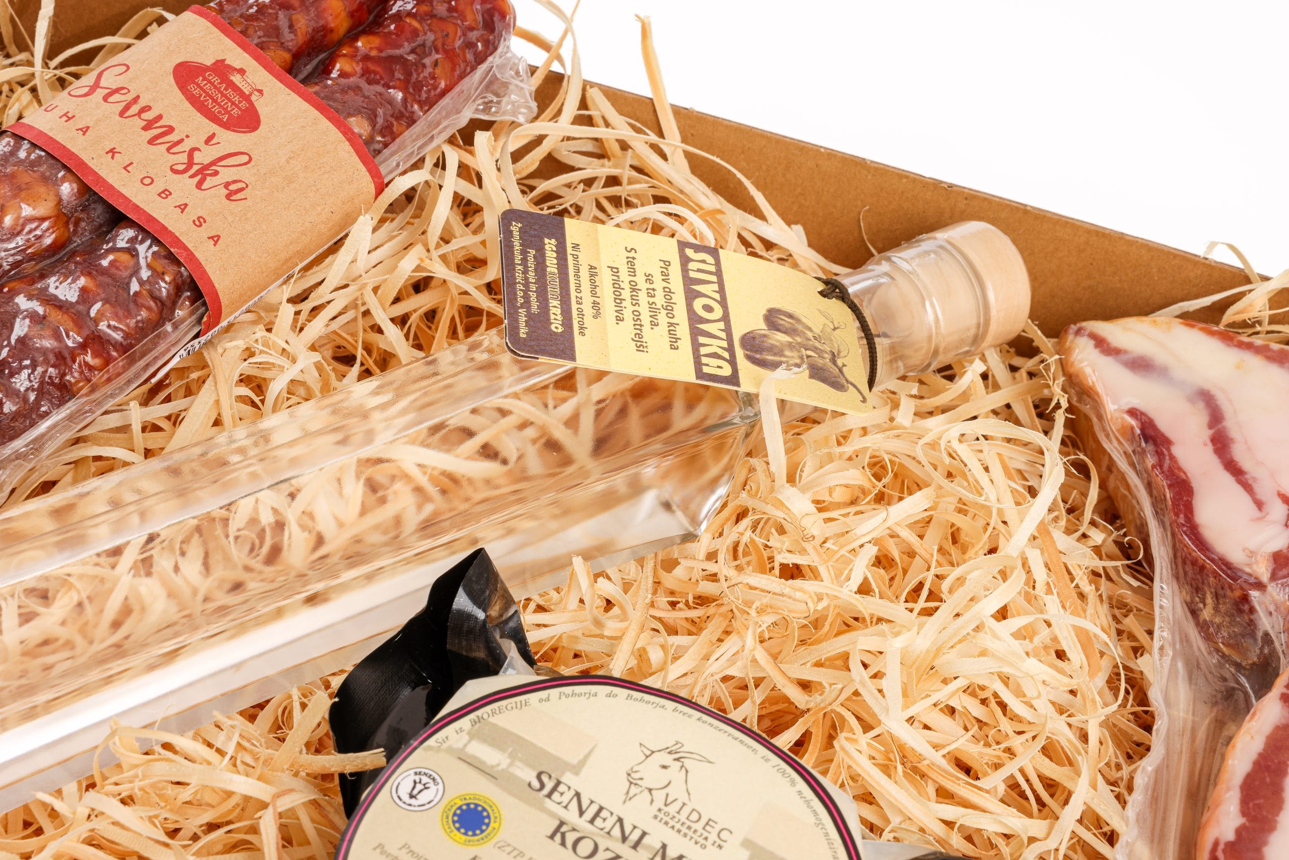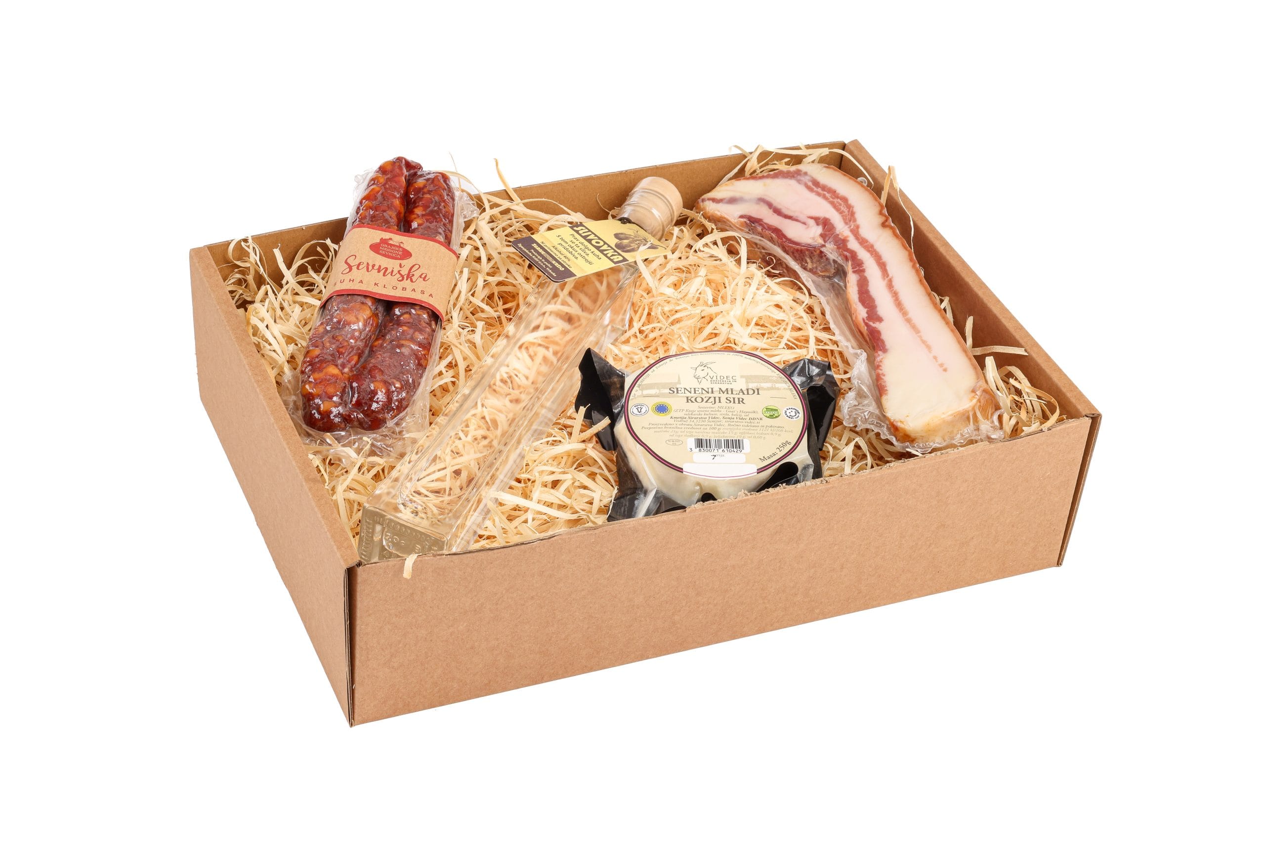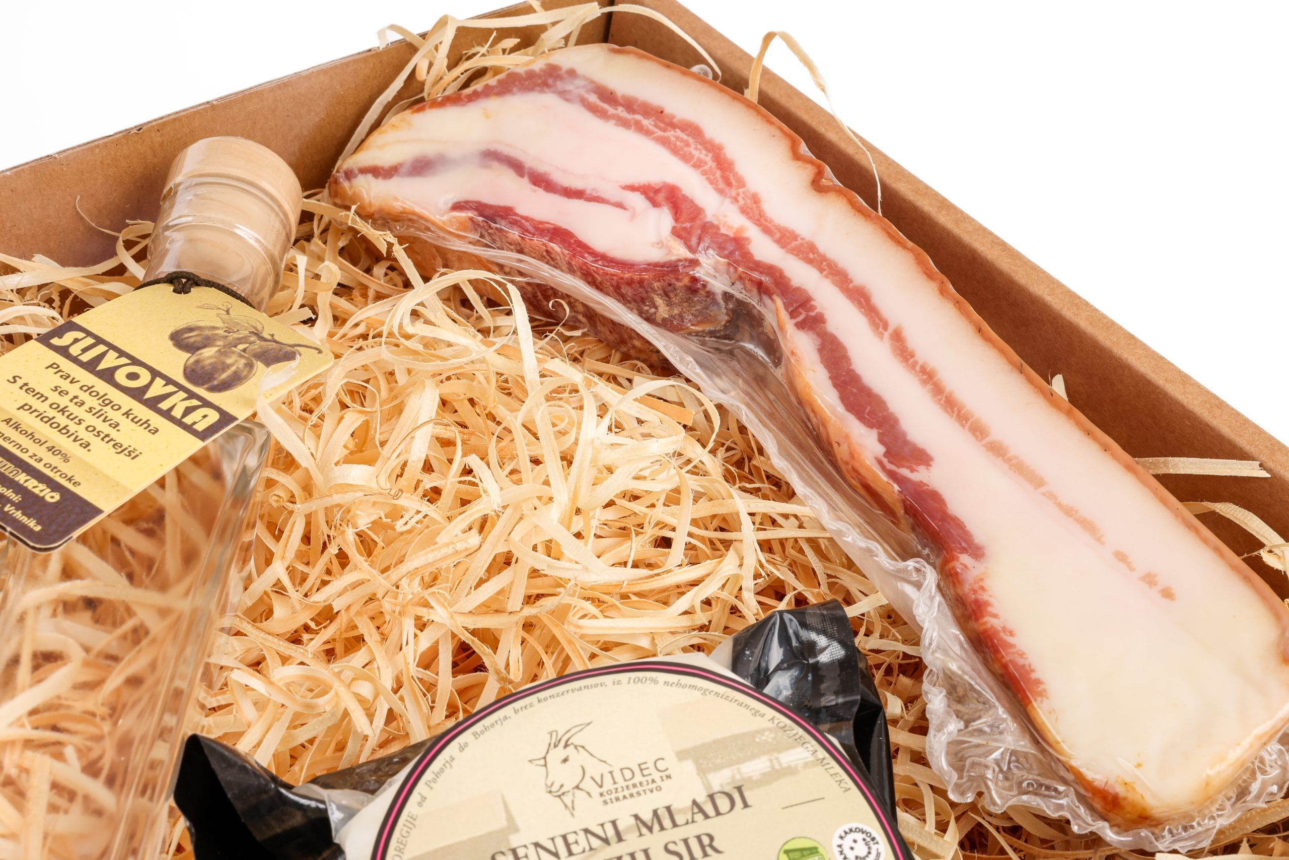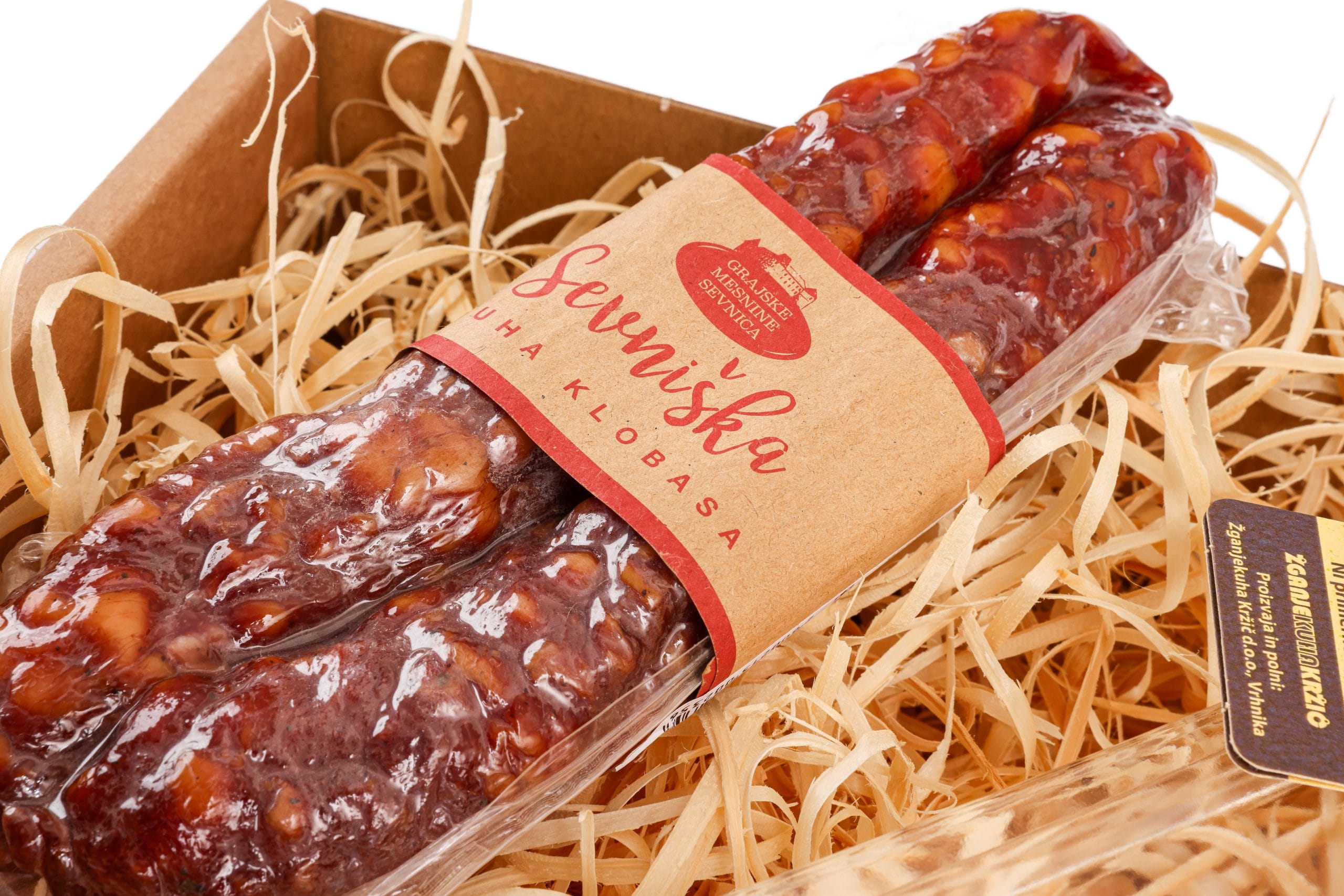 Sevniška panceta krškopoljec, cca 350gr – Grajske mesnine – mnogi se strinjajo, da je meso krškopoljca, avtohtone slovenske sorte prašiča, ki je znana po svoji črno-beli barvi, sam vrh slovenske kulinarične dediščine. Suhomesnati proizvodi Grajskih mesnin so izdelani iz mesa z lokalnih kmetij z dolenjske strani Save. Narejeni so ročno, zato lahko njihova teža rahlo odstopa